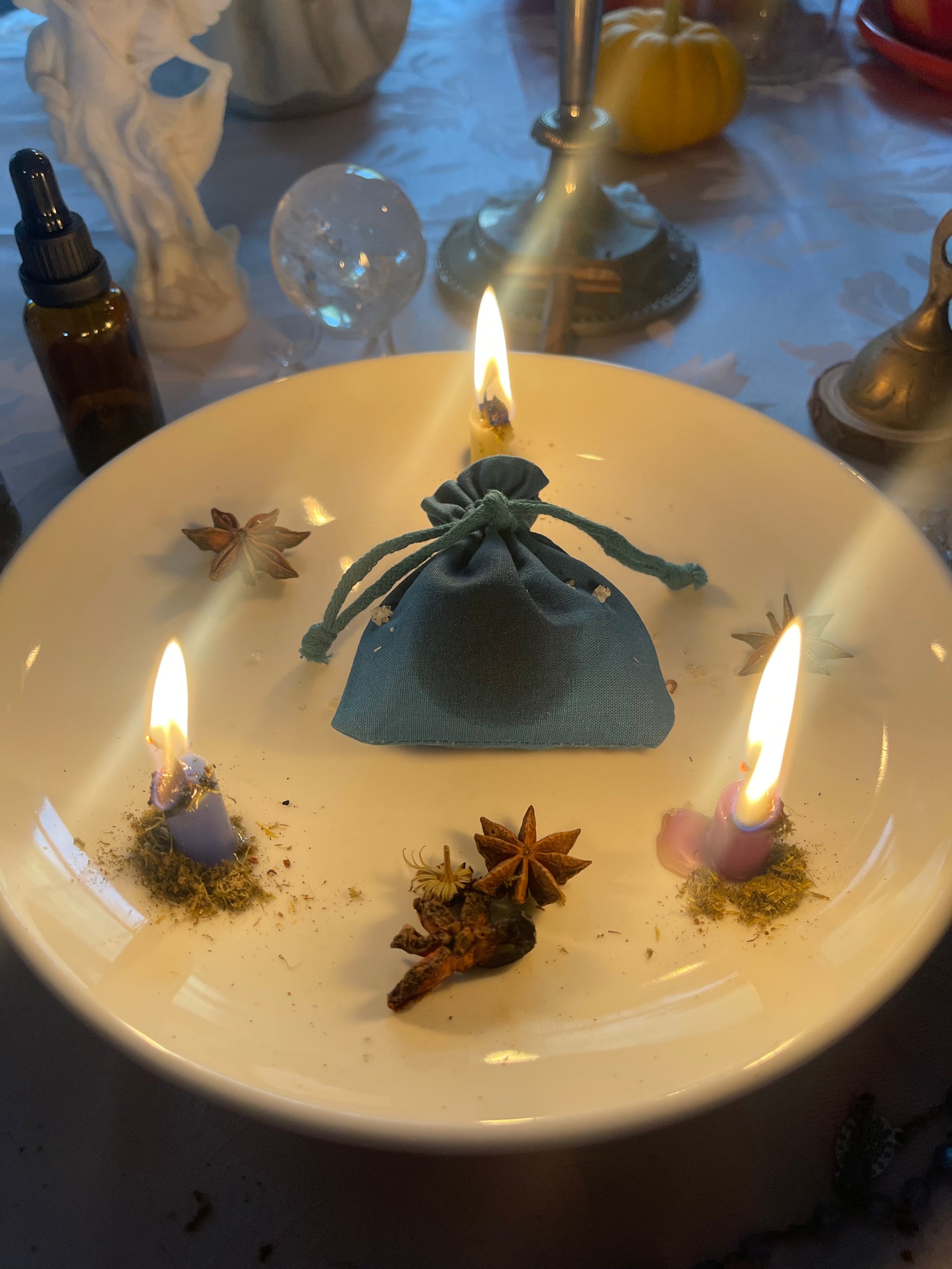 Rituel hoodoo pendant lequel je confectionne un pochon magique à porter sur vous pour développer vos capacités extrasensorielles. (Voyance, mediumnité…) Il peut également être placé sous l’oreiller pour agir sur vos rêves.